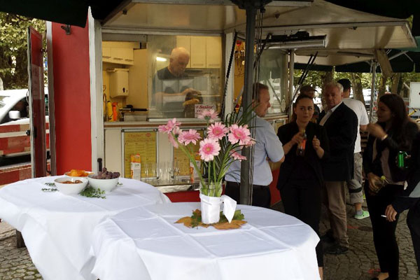 Unsere einzigartige, bekömmliche fettarme Rezeptur unserer BOSNA-Grillwürstel genießen nicht nur goßartige Künstler und Spitzensportler, sondern auch Gäste aus den umliegenden Büros.